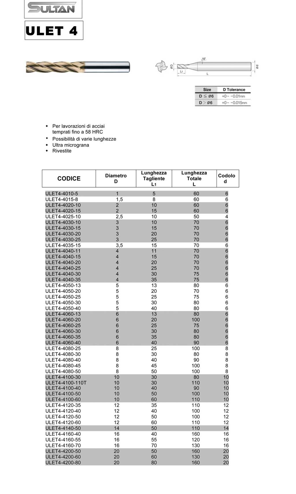 FRESE CILINDRICHE 4 TAGLI - SERIE LUNGA - ULET4